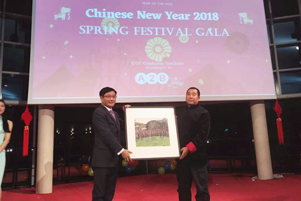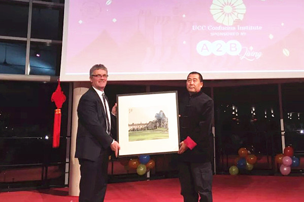 与此同时,借由科克大学孔子学院2018春节联欢活动现场,徐豪先生还精心挑选了三件作品分别赠予中国驻爱尔兰大使岳晓勇阁下、爱尔兰科克市市长 Tony Fitzgerald 先生、爱尔兰科克大学副校长John O'Halloran教授。