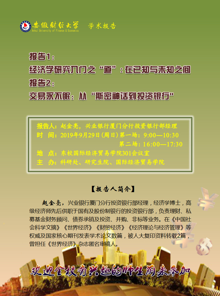 2019年9月29日:1.经济学研究入门之“道” 2 .交易永不眠:从“斯密神话”到投资银行