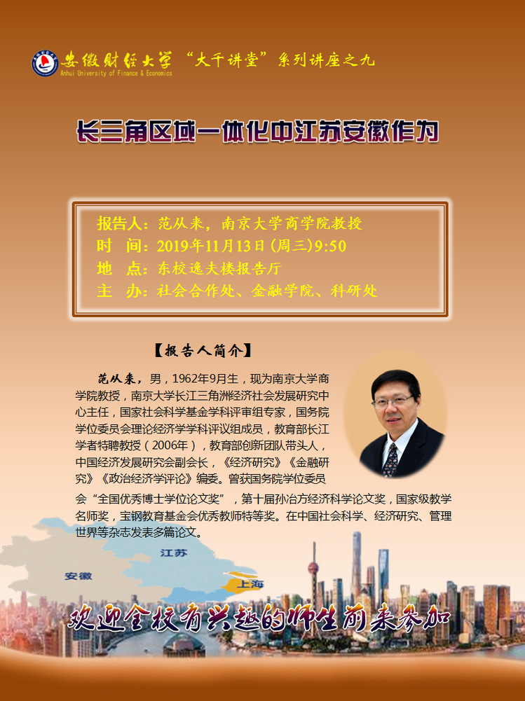 2019年11月13日:“大千讲堂”系列讲座之九 ——长三角区域一体化中江苏安徽作为