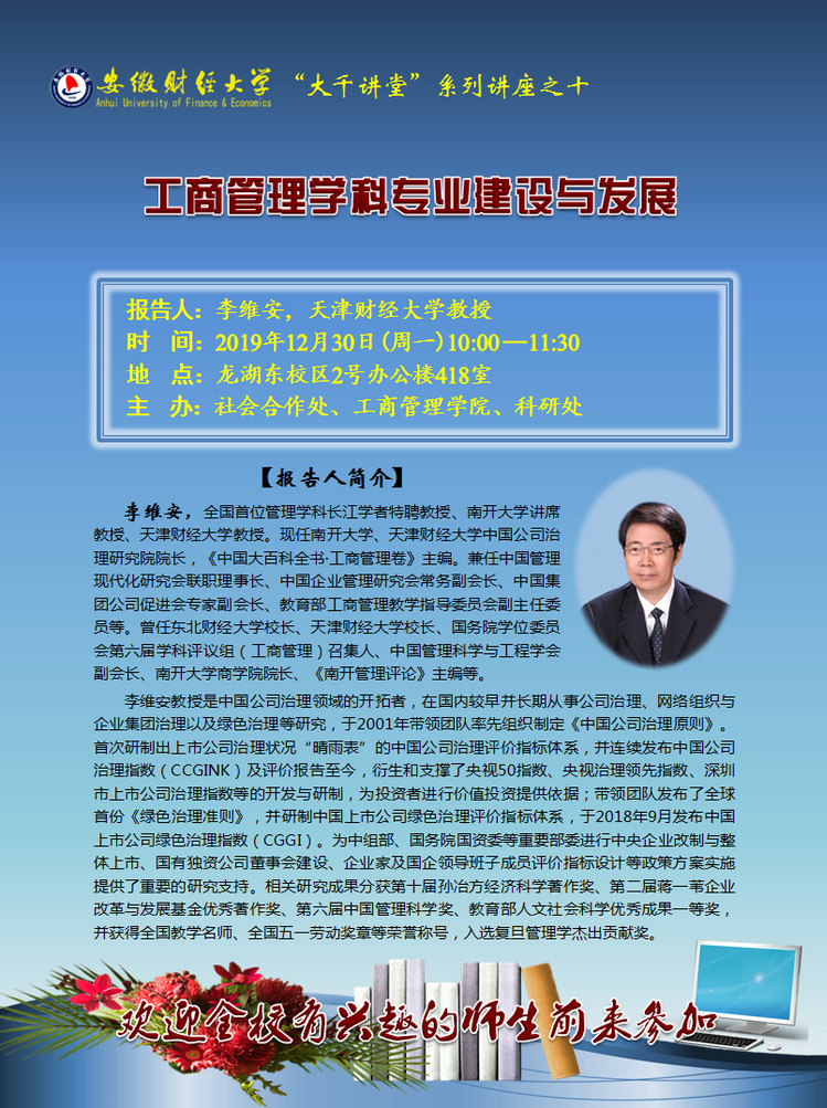 2019年12月30日:“大千讲堂”系列讲座之十 ——工商管理学科专业建设与发展