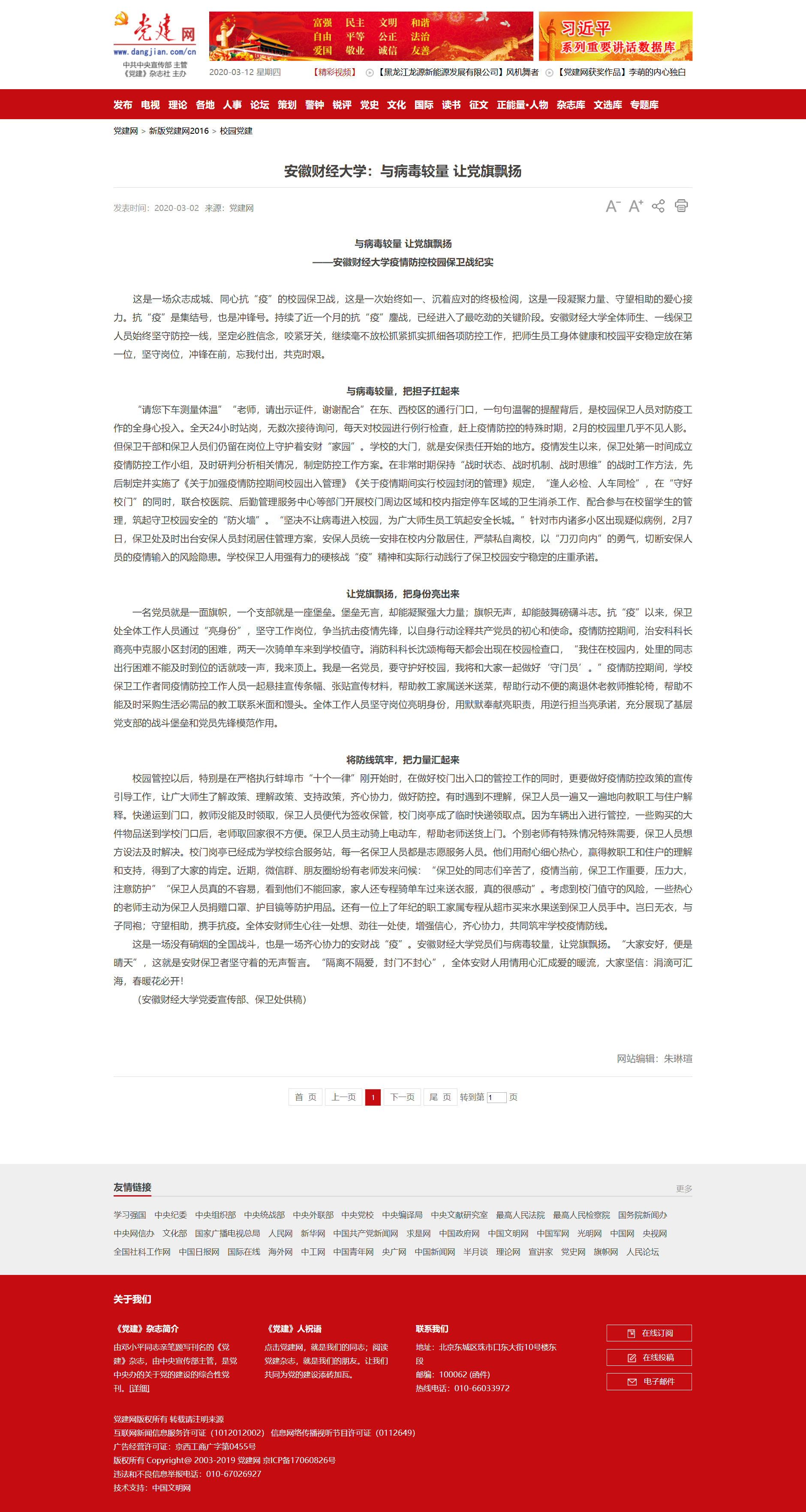 3月2日,党建网报道了我校校园疫情防控战疫纪实,具体链接如下: