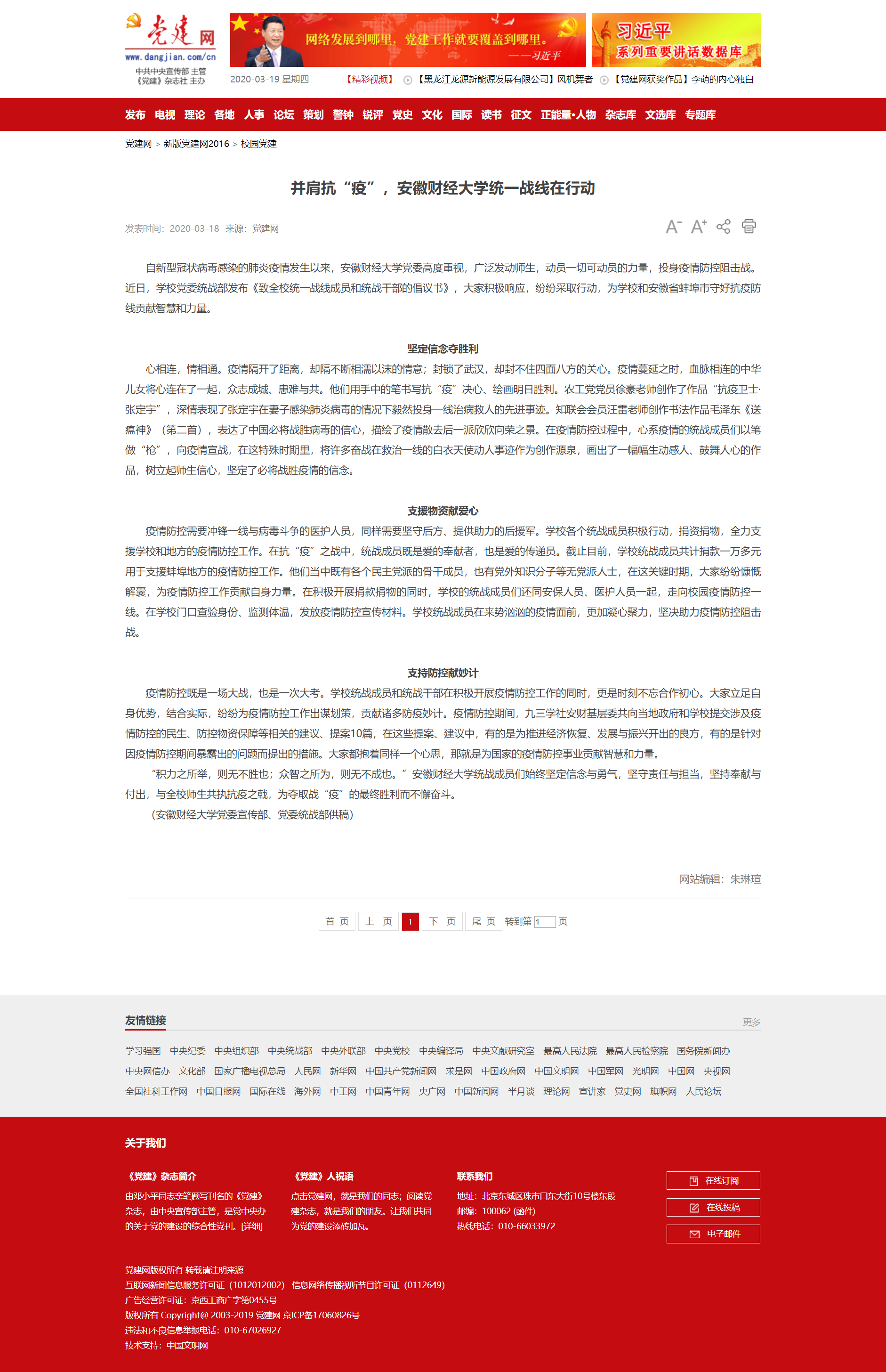 党建网报道链接:http://www.dangjian.cn/djw2016sy/xiaoyan/202003/t20200318_5482752.shtml