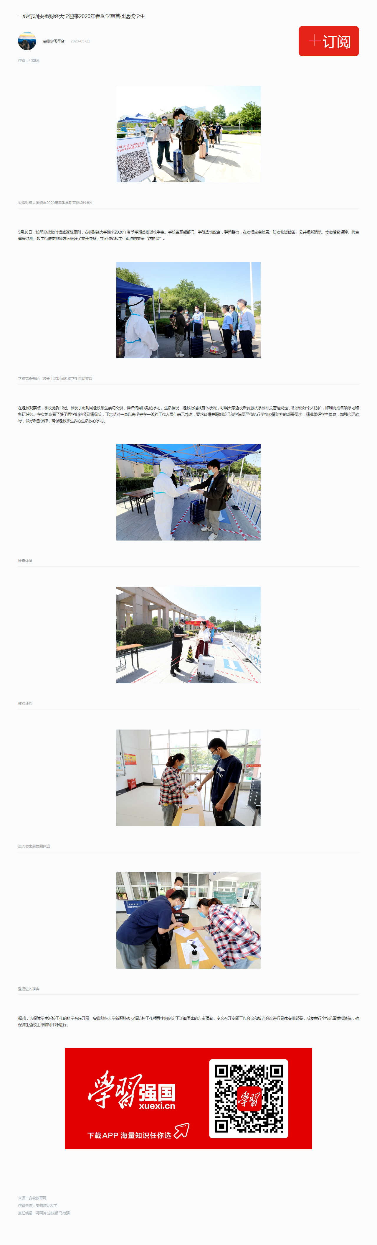 5月21日,学习强国报道了我校迎来2020春学季首批返校学生,具体报道链接如下: