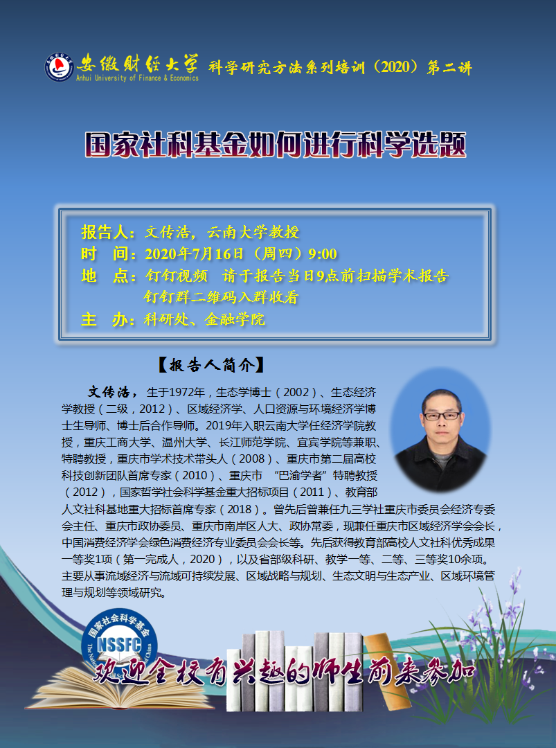 2020年7月16日:【科学研究方法系列培训(2020)第二讲】国家社科基金如何进行科学选题