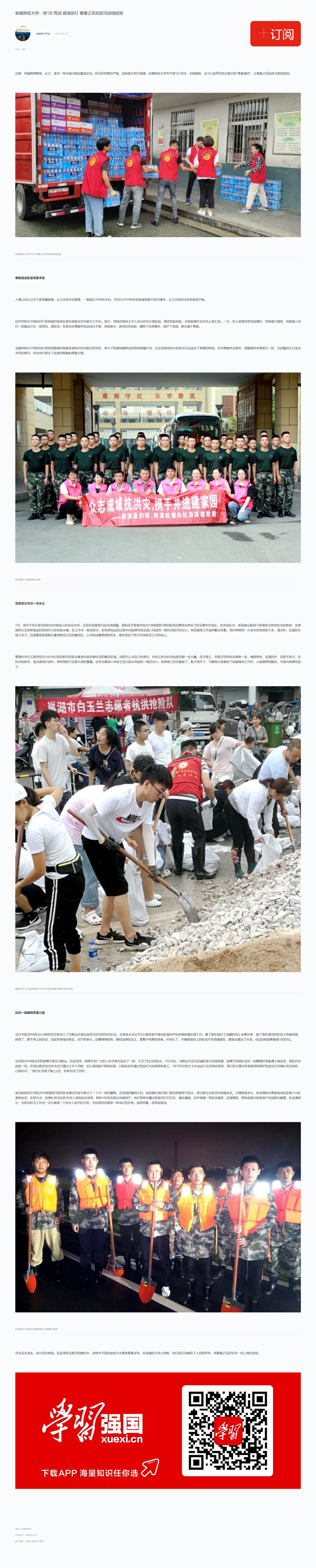 8月8日,学习强国平台报道了我校学子闻“汛”而动 踏浪前行,让青春之花在防汛前线绽放,具体报道链接如下:https://article.xuexi.cn/articles/index.html?source=share&art_id=2967761951816800936&showmenu=false&study_style_id=feeds_default&t=1596851175700&share_to=wx_single&item_id=2967761951816800936