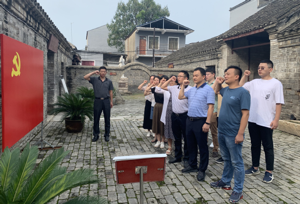参观结束后,在新四军淮上办事处旧址院内,机关党委第十四党支部书记李景宝带领全体党员一起重温入党誓词,表达了坚定不移听党话、跟党走的政治信念。