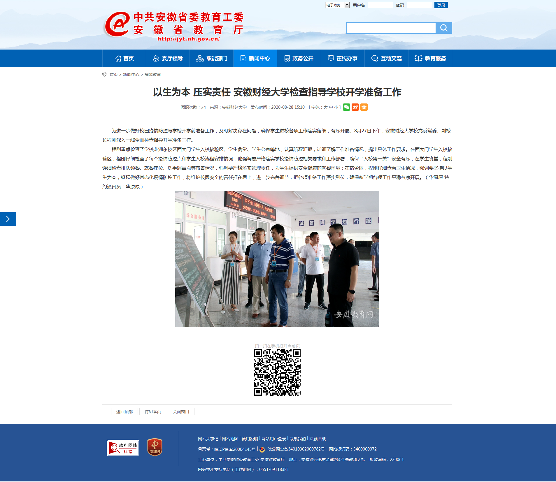 8月28日,安徽教育网、中安教育网报道了我校检查开学前准备工作,具体报道链接如下:
