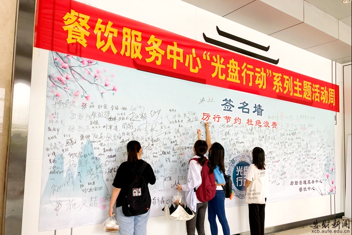 笔下有承诺,光盘在行动。9月14日至15日,餐饮服务中心联合伙食管理委员会、美食协会在北苑食堂西门开展了宣讲和倡议签名活动。通过志愿者现场对“光盘行动”的宣传讲解,引导学生树牢“理性消费、文明用餐”意识。同时,餐饮服务中心还就食品安全与疫情防控相关知识开展了线上答题活动,在北苑食堂西门,同学们纷纷排队参与活动、答题抽奖,理论与实践相结合,活动取得良好效果。