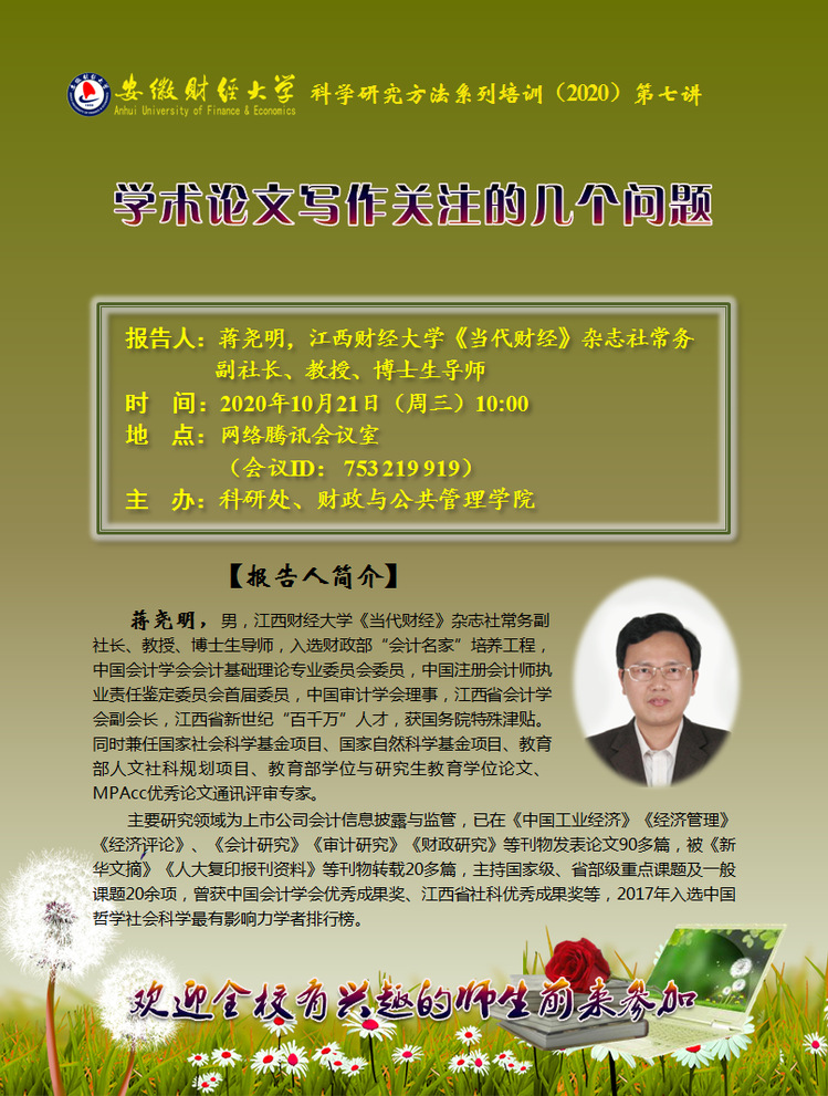 2020年10月21日:【科学研究方法系列培训(2020)第七讲】学术论文写作关注的几个问题