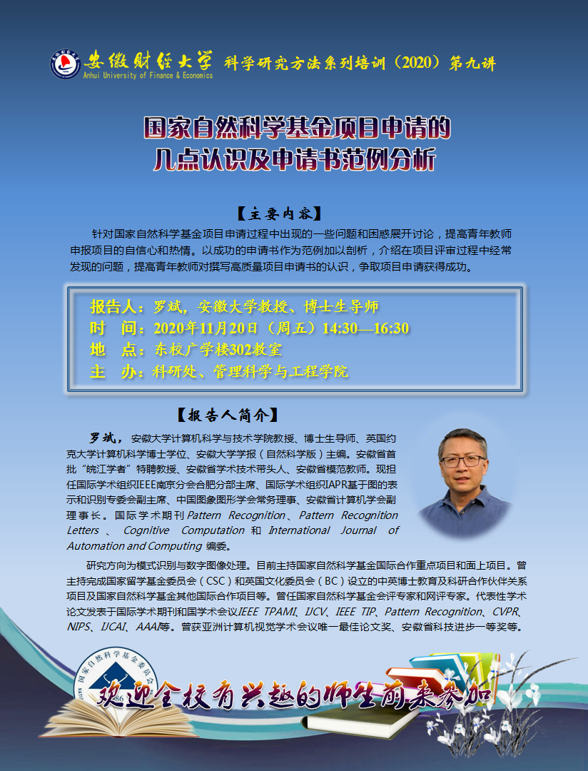 2020年11月20日:【科学研究方法系列培训(2020)第九讲】国家自然科学基金项目申请的几点认识及申请书范例分析