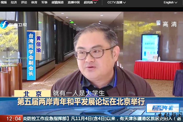 11月20日,东南卫视报道了我校教师黄信瑜热议两岸青年和平发展