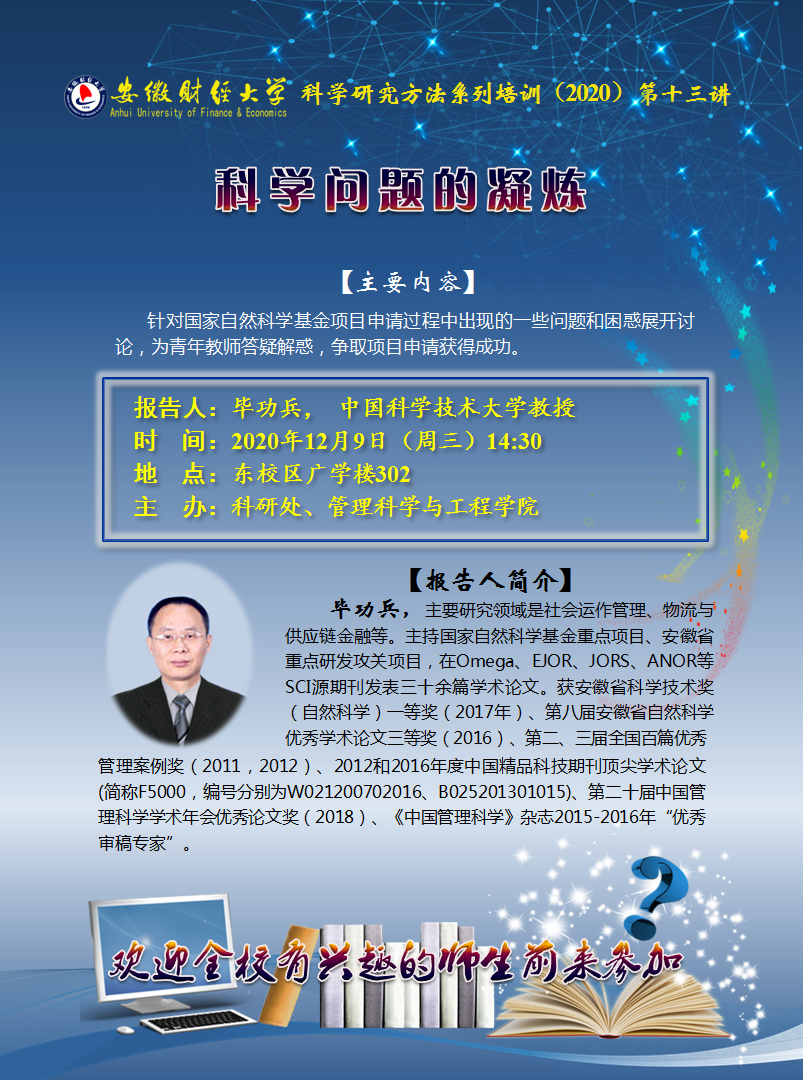 2020年12月9日:【科学研究方法系列培训(2020)第十三讲】科学问题的凝炼