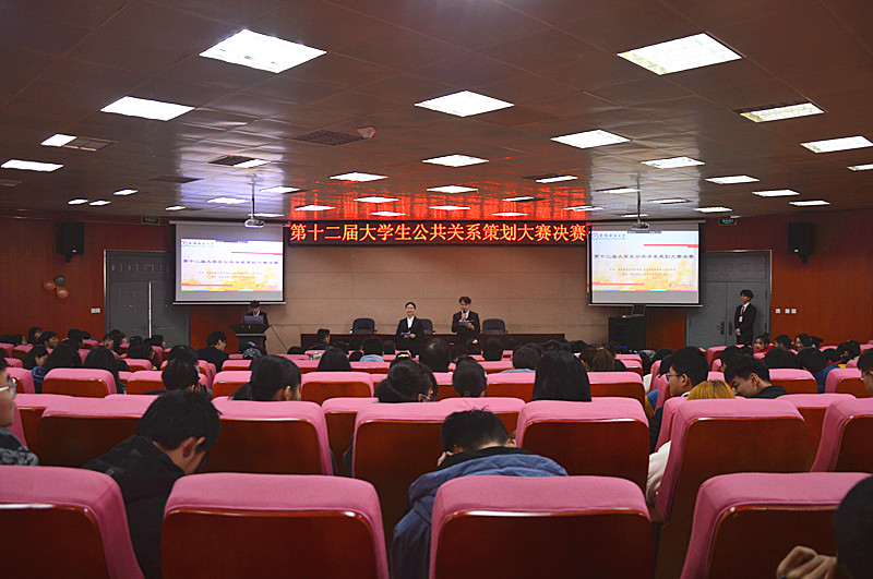 11月29日,由校科研处、校团委主办,学生经济研究学会承办的第十二届大学生公共关系策划大赛决赛在东校区博文楼研究生报告厅举行。本次比赛邀请了工商管理学院副院长梁中教授、工商管理学院李永发教授、工商管理学院徐伟教授、艺术学院王纲副教授、会计学院田园副教授担任评委老师,科研处副处长李景宝为大赛致辞。蚌埠学院等兄弟高校学生社团联合会代表,校各学院学生会代表及各大学生组织代表,科研处指导老师,学生经济研究学会全体会员200余人观摩了比赛。
