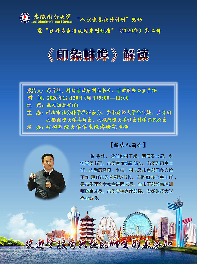 2020年12月20日:【“人文素养提升计划”活动暨“社科专家进校园系列讲座”(2020年)第二讲】《印象蚌埠》解读