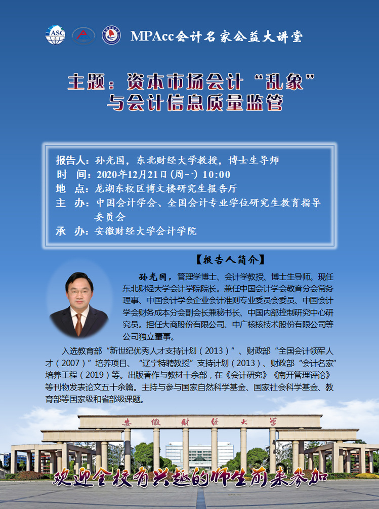 2020年12月21日:【MPAcc会计名家公益大讲堂】资本市场会计“乱象” 与会计信息质量监管