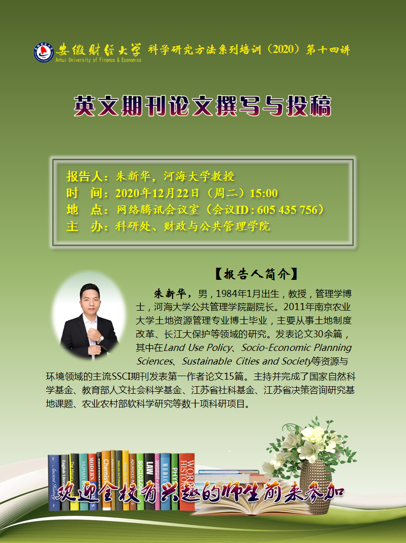 2020年12月22日:【科学研究方法系列培训(2020)第十四讲】英文期刊论文撰写与投稿