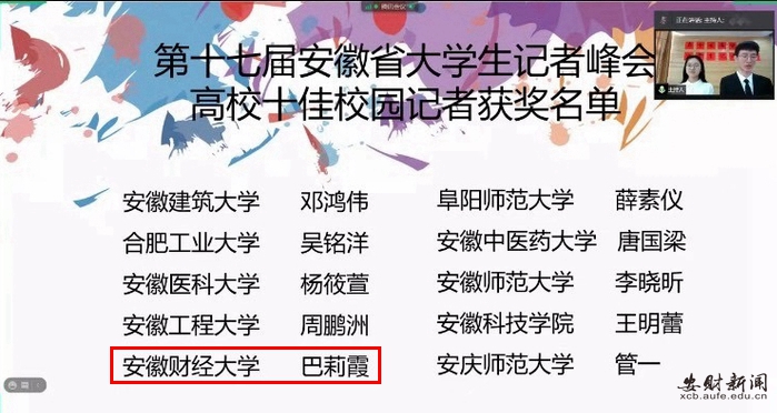第十七届安徽省大学生记者峰会由安徽省青年新闻工作者协会和合肥学院共同举办,安徽青年报社和合肥学院党委宣传部承办。本次峰会立足校园,共同探讨高校新闻事业的新理念、新动态,创新高校新闻人才的联合培养机制,旨在为新一代青年大学生综合素质拓展提供社会实践舞台,为祖国新闻事业可持续发展提供融智平台。在本次峰会中,我校共斩获6个奖项,其中学通社记者团团长巴莉霞同学从全省百余所高校众多学生记者中脱颖而出,荣获“十佳校园记者”称号,其作品《充付费的电,不如寻回曾经的净土》获“好新闻奖言论类”二等奖,作品《脱贫攻坚:撸起袖子加油干,甩开膀子拼命干》获“好新闻奖通讯类”二等奖;记者团闫鑫广同学的作品《靠山居民,渴望“靠水”生活》获“好新闻奖消息类”二等奖;新媒体团队《迎新整装待发,乘帆远航》获“好新闻奖图片类”三等奖;记者团魏嘉琳同学的作品《英雄华夏凯歌行,后浪奔涌谱华章》获“后浪奔涌,薪火承志”主题征文三等奖。