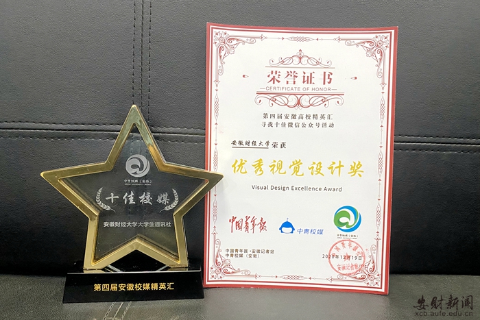 中国(安徽)高校传媒联盟是由安徽省各大高校发起成立的安徽高校校媒会员单位联谊组织,截至目前,覆盖安徽省40余所高校,拥有会员媒体70余家。中青校媒(安徽)2020年度新媒体作品巡展旨在评选安徽高校新媒体中最具影响力和创造力的作品。在本次评选中,我校大学生通讯社获2020年度中青校媒(安徽)“十佳校媒”称号。乐竞在线注册微信公众号获2020年度中青校媒(安徽)“十佳微信公众号”称号,同时还在安徽省高校优秀新媒体评选中获“优秀视觉设计奖”。我校报送的3件新媒体作品获得二等奖1项、三等奖2项。