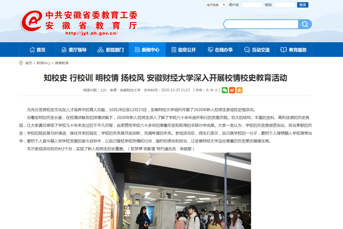 12月29日,安徽教育网报道我校深入开展校情校史教育活动。