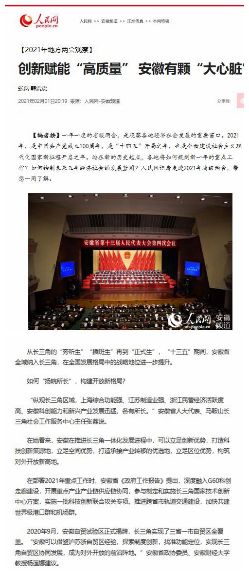 1月27日、28日,安徽省十三届人大四次会议、安徽省政协十二届四次会议在合肥市召开。会议期间,我校代表、委员认真撰写议案和提案,以高度的政治责任感和使命感认真履行参政议政和建言献策职责。人民网等相关媒体给予了相关报道。