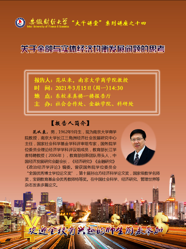2021年3月15日:【“大千讲堂”系列讲座之十四】关于金融与实体经济均衡发展问题的思考