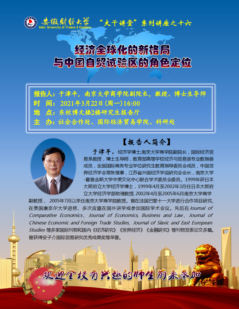 2021年3月22日:【“大千讲堂”系列讲座之十六】经济全球化的新格局与中国自贸试验区的角色定位