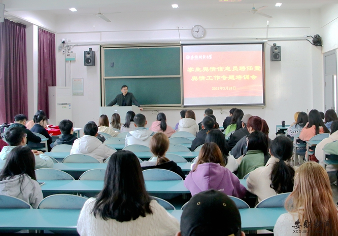 3月24日下午,我校学生舆情信息员聘任暨舆情信息工作专题培训会在慎思楼105教室举办。党委宣传(统战)部副部长陈先年为学生舆情信息员颁发聘书并作专题培训。
