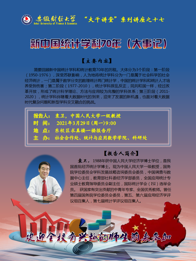 2021年3月29日:【“大千讲堂”系列讲座之十七】新中国统计学科70年(大事记)
