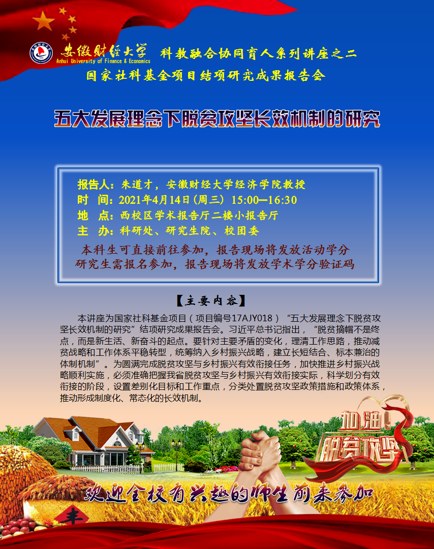 2021年4月14日:【科教融合协同育人系列讲座之二】五大发展理念下脱贫攻坚长效机制的研究