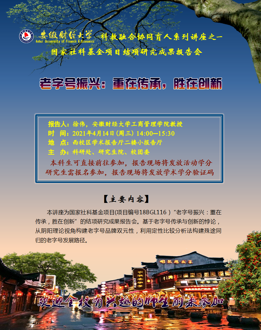 2021年4月14日:【科教融合协同育人系列讲座之一】老字号振兴:重在传承,胜在创新