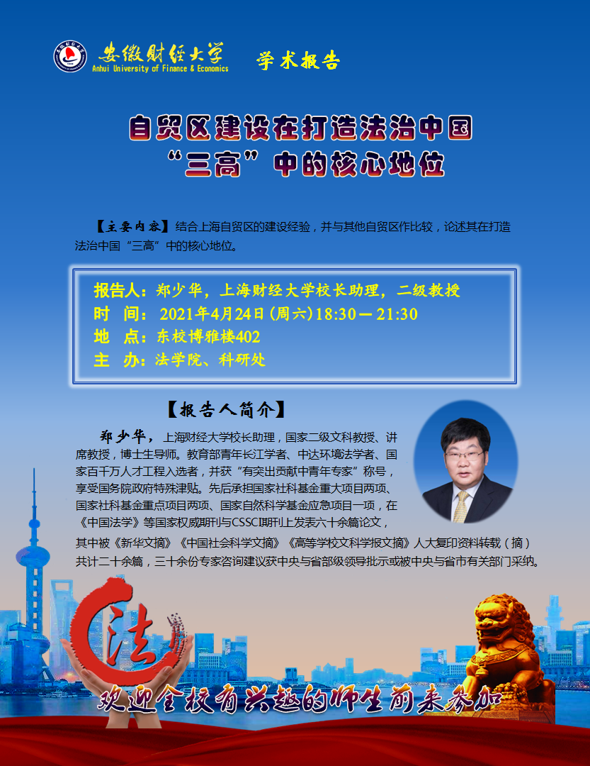 2021年4月24日:自贸区建设在打造法治中国“三高”中的核心地位