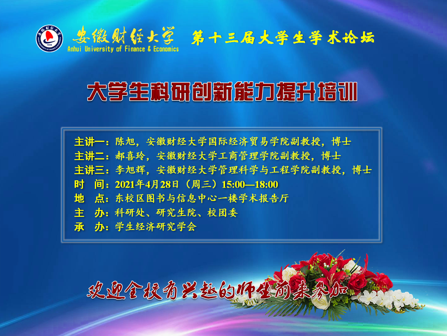 2021年4月28日:【第十三届大学生学术论坛】大学生科研创新能力提升培训