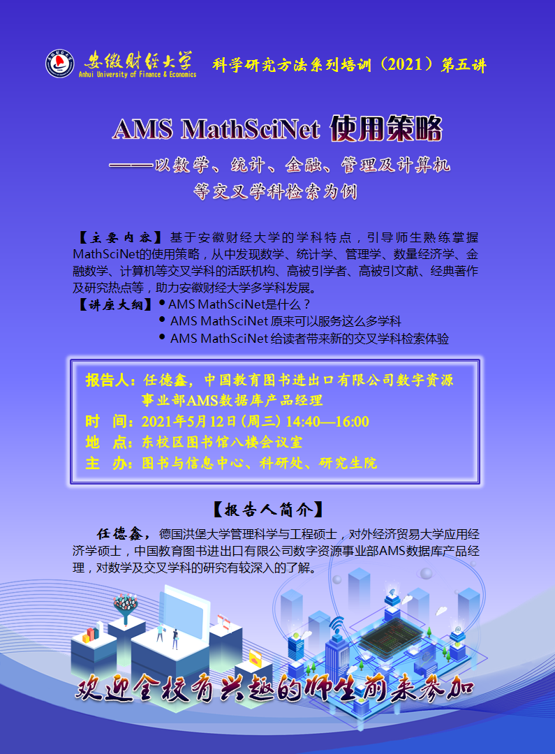 2021年5月12日:【科学研究方法系列培训(2021)第五讲】AMS MathSciNet 使用策略——以数学、统计、金融、管理及计算机等交叉学科检索为例
