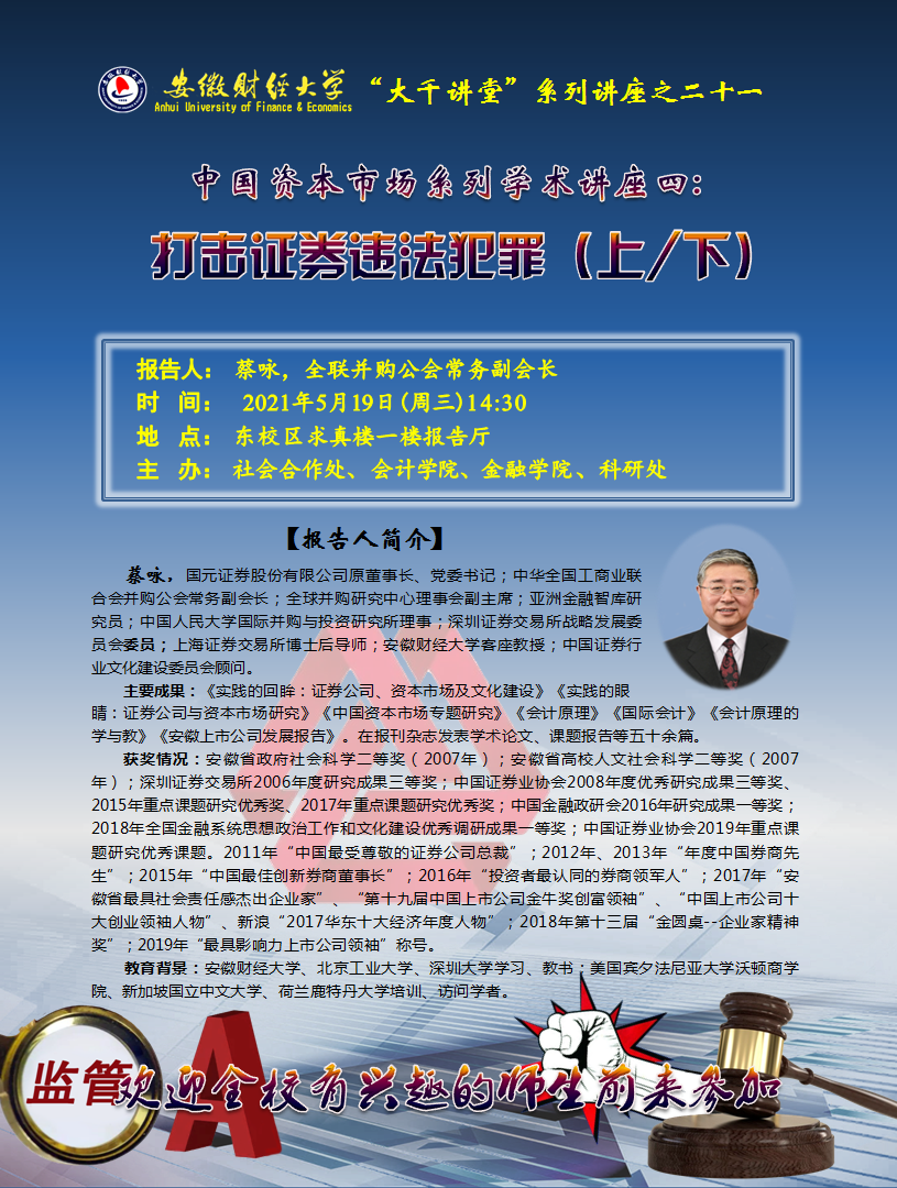 2021年5月19日:【“大千讲堂”系列讲座之二十一】打击证券违法犯罪(上/下)