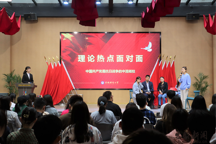 为迎接中国共产党百年华诞,响应党中央学四史、知党情、跟党走的号召,5月13日上午,由党委宣传部、校团委、马克思主义学院共同举办的“学党史、庆百年:理论热点面对面”活动在艺术楼科普曼报告厅举行。马克思主义学院张晓婧副教授、曹凌博士应邀与学生代表就“中国共产党是抗日战争的中流砥柱”展开面对面交流、讨论。各学院学生代表共计百余人参加本次活动。