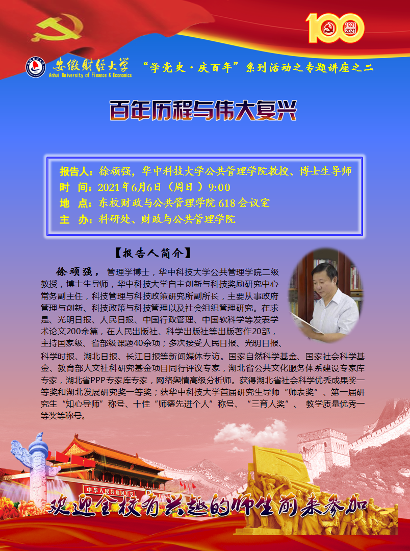 2021年6月6日:【“学党史·庆百年”系列活动之专题讲座之二】百年历程与伟大复兴