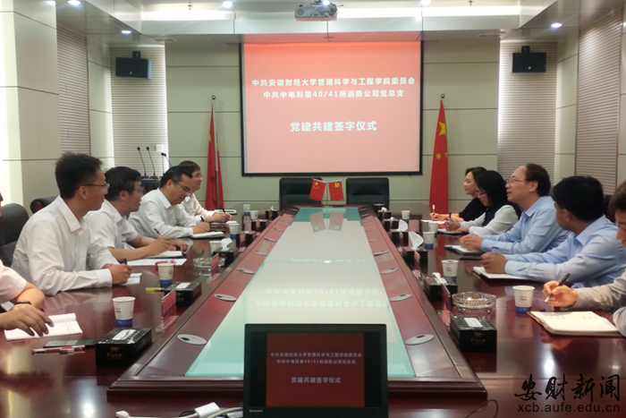 为贯彻落实新时代党的建设总要求,提升校企双方党建水平,探索校企党建共建示范机制,激发基层党建活力,5月28日下午,管工学院党委与中电科第40/41所消防公司党总支在依爱消防电子有限责任公司举行党建共建签约仪式。学院党委书记吴永夺、副书记徐翠平、党委委员、副院长徐勇等出席签约仪式,依爱消防电子有限责任公司党总支书记、副总经理单夫来,组织委员、总工程师冯勇以及其他总支委员参加签约仪式。