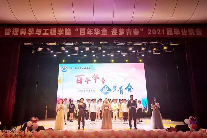 5月30日晚,管理科学与工程学院在龙湖东校区艺术楼报告厅举办“百年华章 逐梦青春”2021届毕业晚会。学院党政领导、辅导员(班主任)和毕业班学生代表共同观看晚会。晚会同时在“斗鱼”平台进行同步直播。
