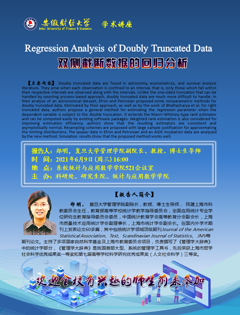 2021年6月9日:Regression Analysis of Doubly Truncated Data