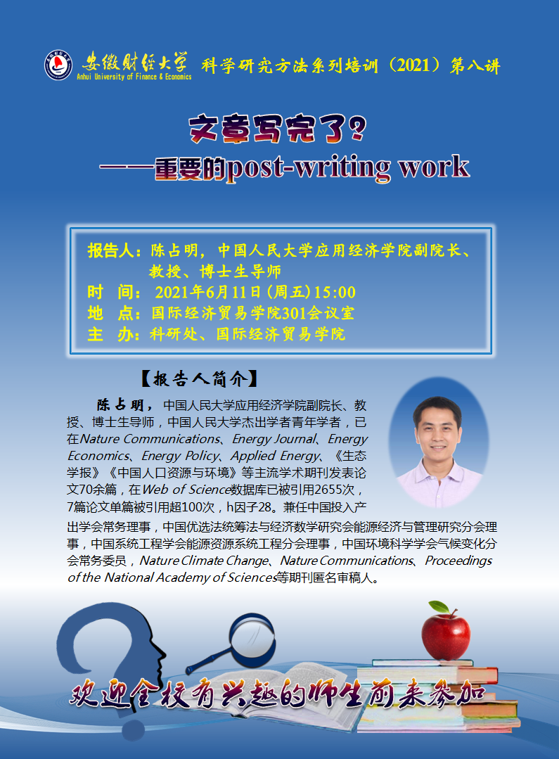 2021年6月11日:【科学研究方法系列培训(2021)第八讲】文章写完了?——重要的post-writing work