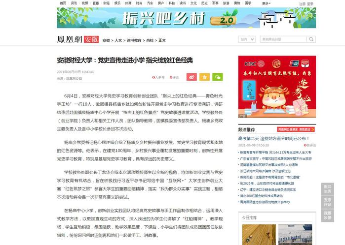 6月9日,凤凰网、安徽新闻网以《乐竞在线注册:党史宣传走进小学 指尖绽放红色经典》报道我校创新创业团队走进小学开展党史学习教育。