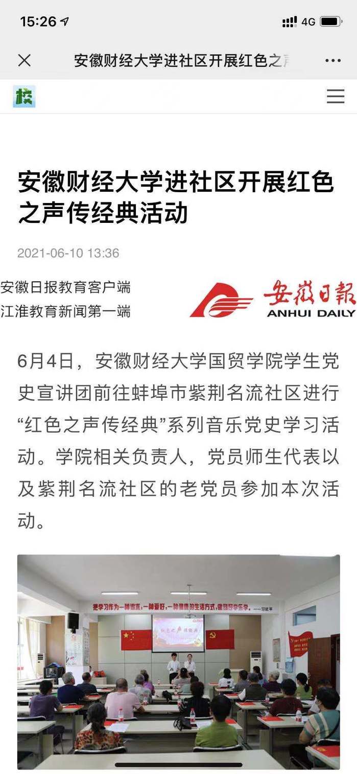 6月10日,安徽新闻网报道我校学生党史宣讲团进社区开展红色之声传经典活动。