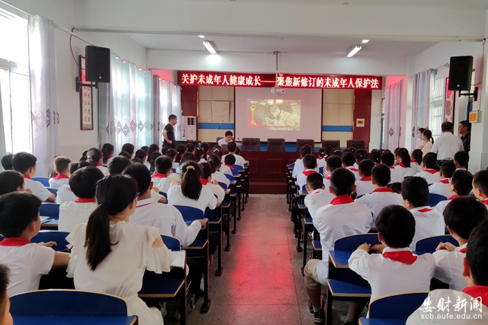 法学院教师胡茂杰为杨庙小学六年级的学生和老师们作了一场题为“关护未成年人健康成长—聚焦新修订的未成年人保护法”的宣讲报告。他结合所授专业课知识,利用身边的案例向同学们详细阐述《未成年人保护法》中的十大亮点。会上,胡茂杰就未成年人保护法内容及未成年人教育问题不时与同学们互动,现场气氛热烈,宣讲效果显著。随后,学院 “雏菊”项目工作室团队学生党员谷靓倩、安薇、张雪梅等同学为在场的小学生们上了一堂党史宣讲课。团队成员为孩子们讲解了刘胡兰英勇就义、抗日小英雄张嘎等一个个动人的红色故事,让孩子们对烈士的革命精神和英勇的斗争精神有了更深刻的了解和认识。本次宣讲内容通俗易懂,阐释道理深入浅出,一段段风云激荡的红色历史,一个个鼓舞人心的红色故事,引起了广大同学的强烈共鸣。