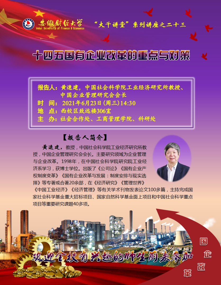 2021年6月23日:【“大千讲堂”系列讲座之二十三】十四五国有企业改革的重点与对策