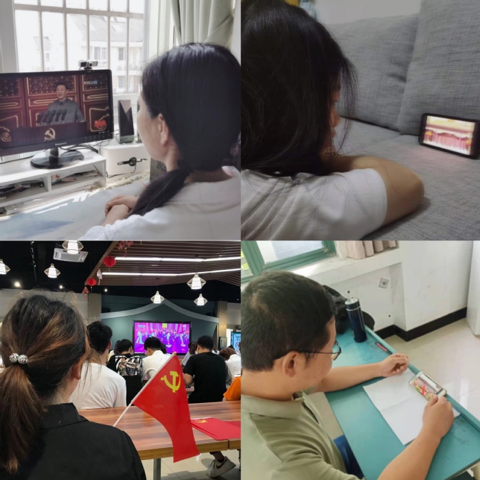 学院党委组织支部书记、专职辅导员、学生党员在学院会议室集中收看,学生公寓党员工作站组织学生党员在工作站集中收看直播,教工党员课间组织学生观看庆典回放,院团委组织百余名学生代表在东校区北苑食堂一楼大厅集中观看,并齐声高唱《歌唱祖国》,现场气氛热烈。师生们倍感振奋,大家纷纷表示,回顾中国共产党百年奋斗的光辉历程,感激革命先烈用鲜血创造的美好时代,展望中华民族伟大复兴的光明前景,要继续弘扬光荣传统,赓续红色血脉,要以实现中华民族伟大复兴为己任,勇于担负时代使命,在担当中历练,在尽责中成长,不负时代,不负韶华,不负党和人民的殷切期望!