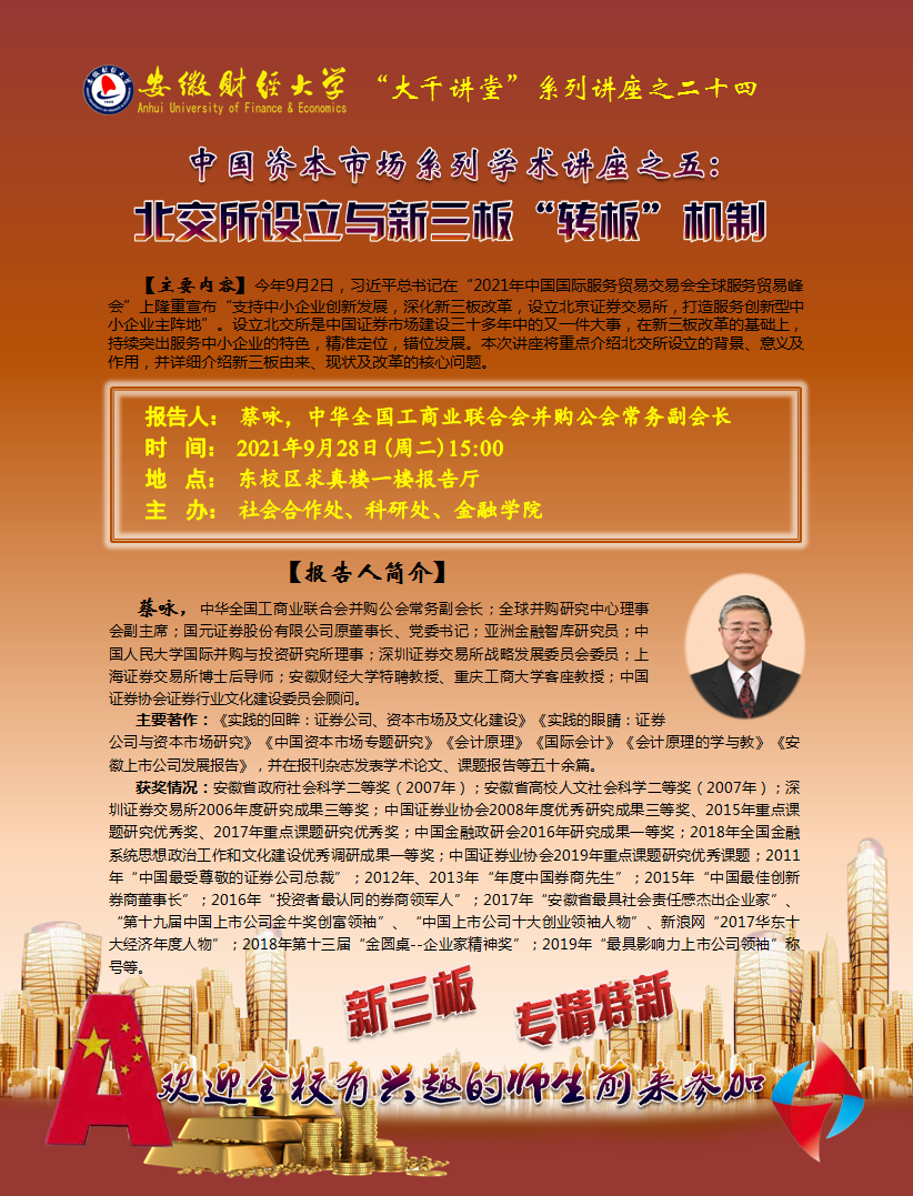 2021年9月28日:【“大千讲堂”系列讲座之二十四】北交所设立与新三板“转板”机制