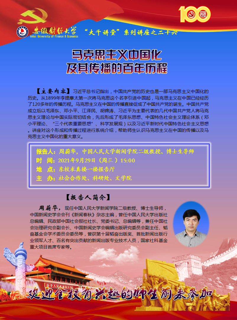 2021年9月29日:【“大千讲堂”系列讲座之二十六】马克思主义中国化及其传播的百年历程