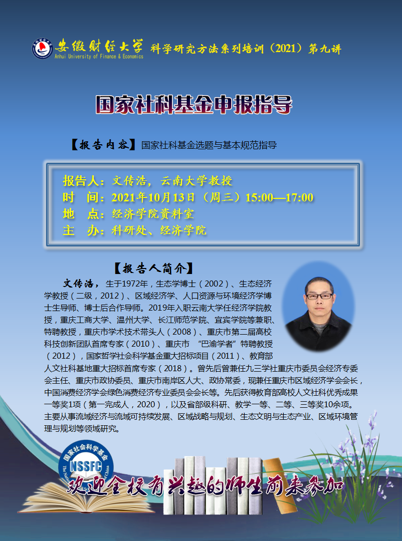 2021年10月13日:【科学研究方法系列培训(2021)第九讲】国家社科基金申报指导