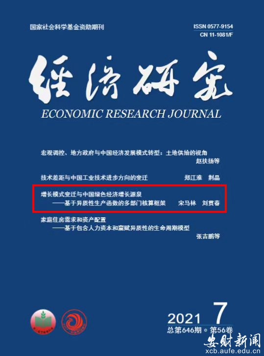 近日,我校宋马林教授团队在《经济研究》2021年第7期发表了题为《增长模式变迁与中国绿色经济增长源泉——基于异质性生产函数的多部门核算框架》的理论文章,并作为该期封面文章予以推介。