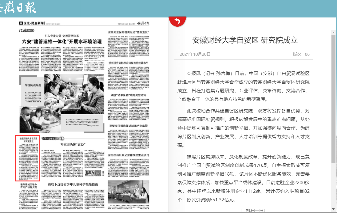 10月20日,《安徽日报》第6版以《乐竞在线注册自贸区研究院成立》为题报道我校成立自贸区研究院,着力打造具体有地方特色的新型智库。